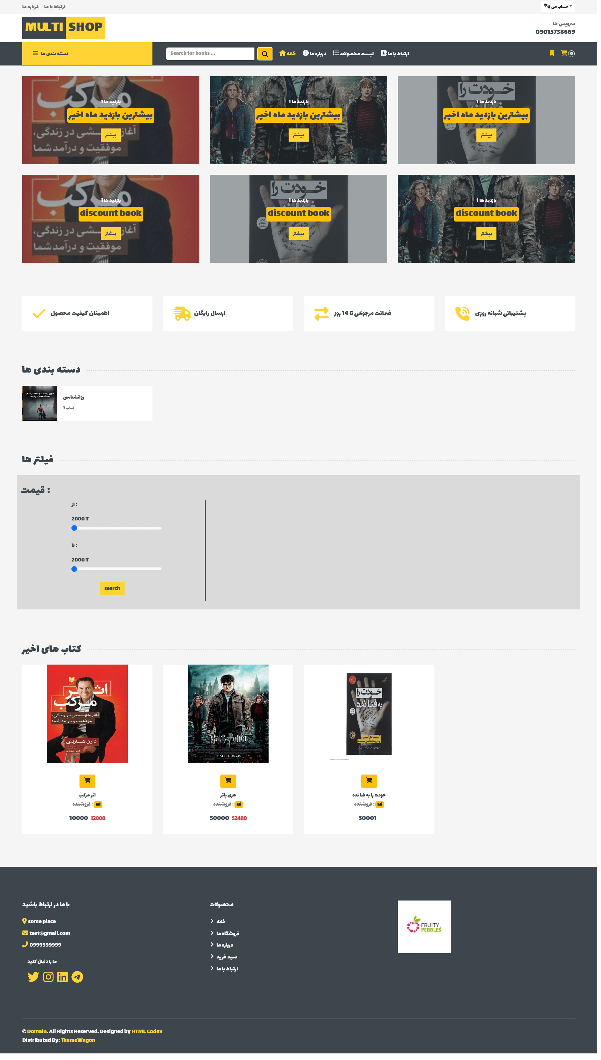 ایجاد سایت فروشگاهی کتاب با کدنویسی به زبان پایتون/جنگو و رعایت کامل سئوی کدنویسی همچنین ایجاد sitemap برای سایت که در 12 روز تحویل کارفرما داده شد و ظاهر ان از html5-css3-bootstrap5 استفاده شد