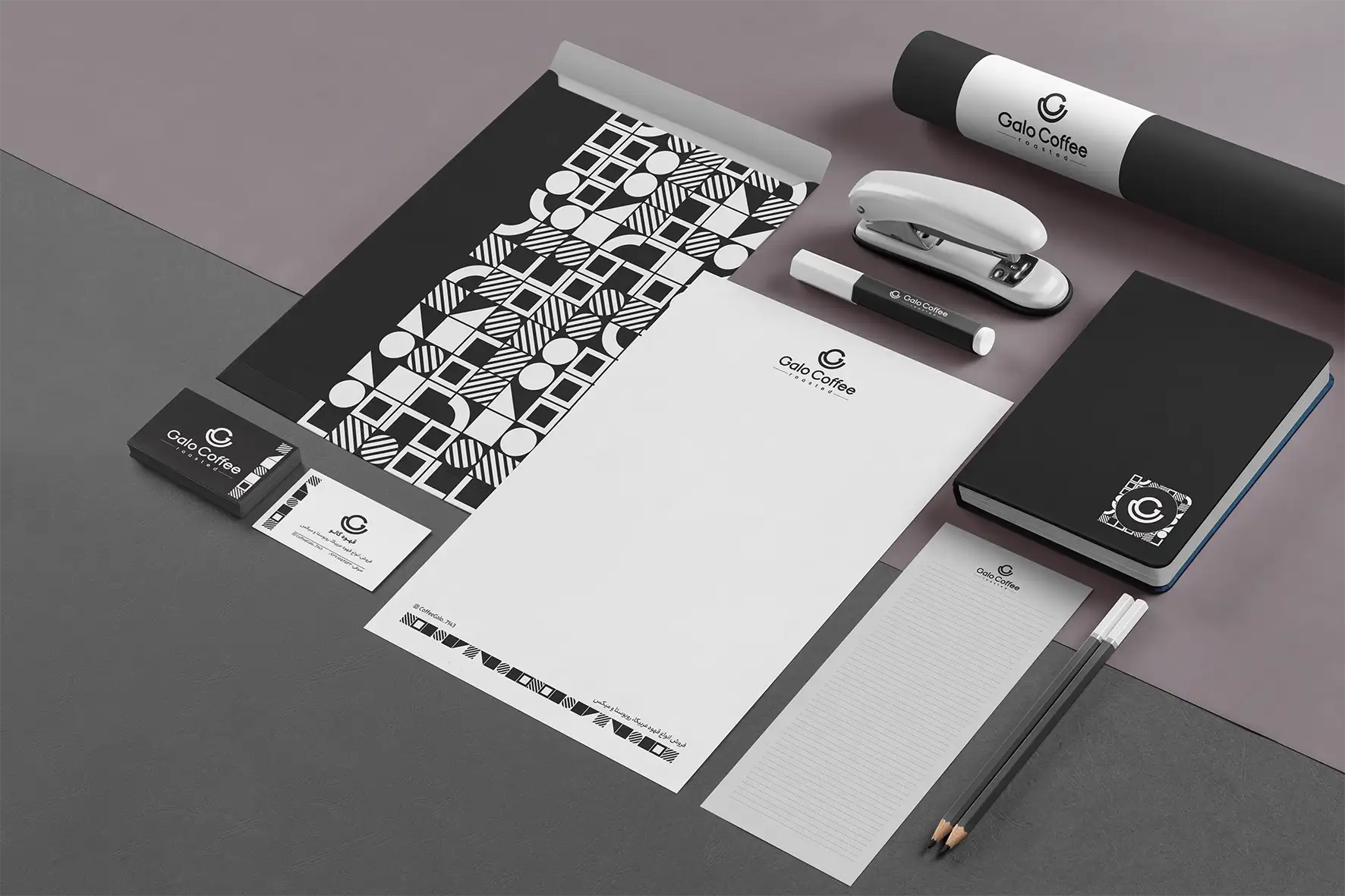 طراحی هویت بصری برند قهوه گالو - با استفاده از طرح های مینیمال و هندسی