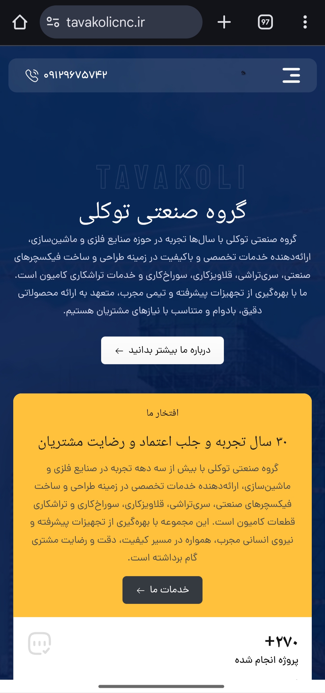 این سایت با وردپرس طراحی شده که کاملا ریسپانسیو و حرفه ای به کارفرما تحویل داده شد لینک : tavakolicnc.ir