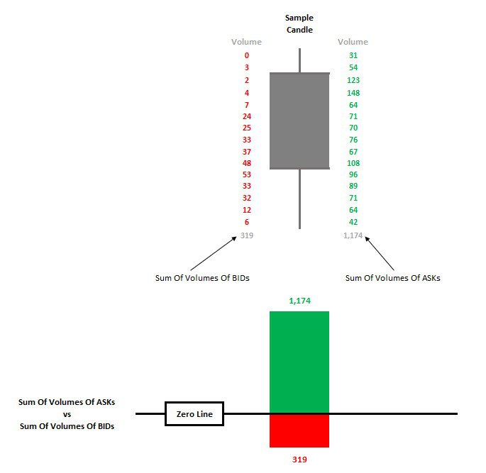 سلام. بنده متقاضی یک اندیکاتور برای پلتفرم نینجا تریدر هستم این اندیکاتور باید به ازاء هر کندل در پنجره اصلی، مجموع حجم معادلات Ask را به صورت یک نمودار ستونی در بالای خط صفر و به رنگ سبز، و مجموع حجم معاملات Bid را در قسمت منفی نمایش دهد: #نیکو
