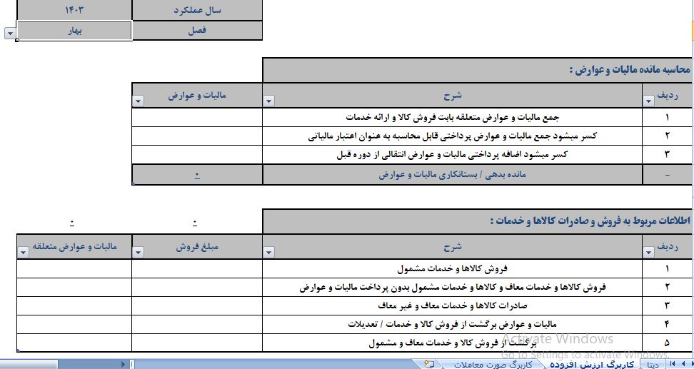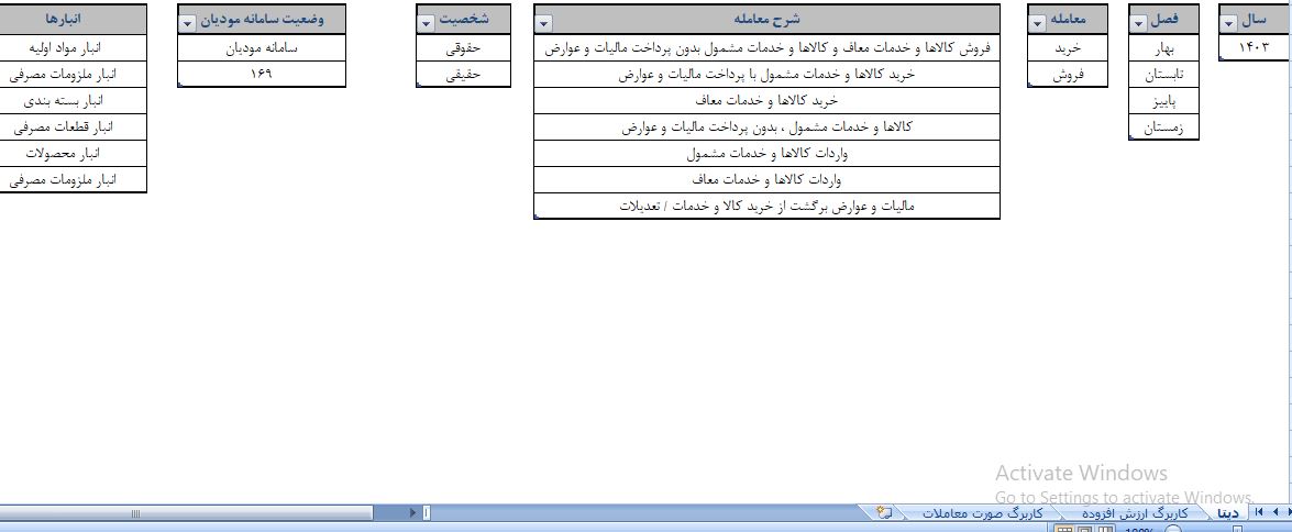 سلام وقت بخیر فرمول نویسی اکسل و گفتن تا روز ۵ شنبه پروژه رو تحویل بدم.ممنون میشم. بله در فایل ما سه شیت هست که شیت سوم دیتا های اصلی گذاشته شده که در شیت اول اگر به عنوان مثال سال 1403 فصل بهار و کالاهای مشمول رو انتخاب میکنید بره تو شیت سوم جمع کالاهای مشمول رو بیاره تو شیت دوم تو سلول مورد نظر قرار بده و همینطور اگر در شیت دوم فصل رو تغییر دادیم با تغییر فصل و سال رقم ها تغییر کنند. 5689