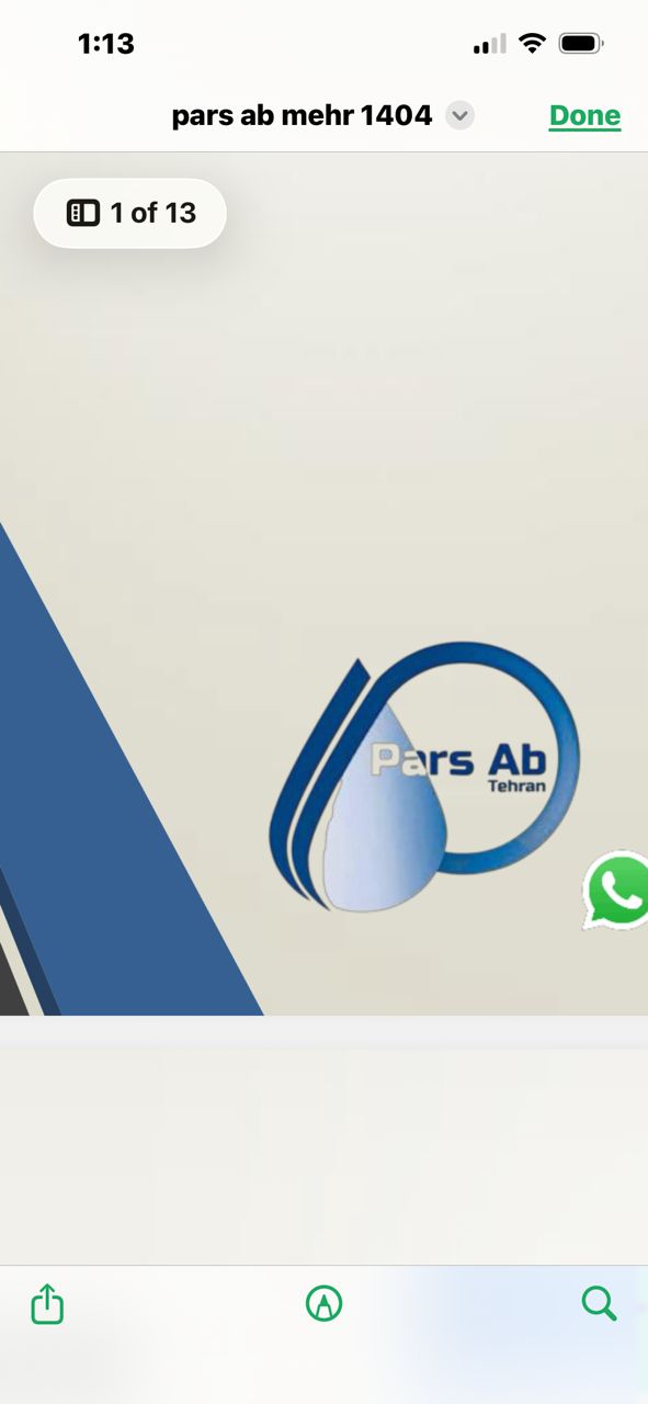 قیمت ها رو تغییر بدم و لوگوهای پارس قطره از کل صفحات حذف بشه و لوگو پارس اب بیاد به جاش این لوگو که عکسشو فرستادم پایین صفحه اول هست و بیاد اول صفحه فایل pdf هست، ورد ندارم تا اخر هفته اشکال نداره، فقط مثل همین باشه همون ورد 6203