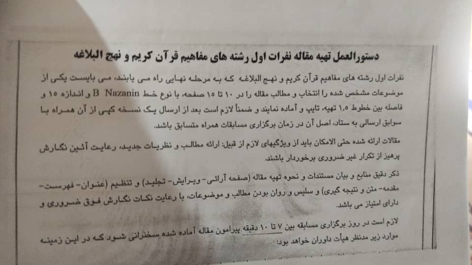 سلام از بین این موضوعات 👆 میخام مقاله بنویسم این هم دستورالعمل مقاله مسابقه علمی دارم که در سطح کشور باید انجام بدم 2303