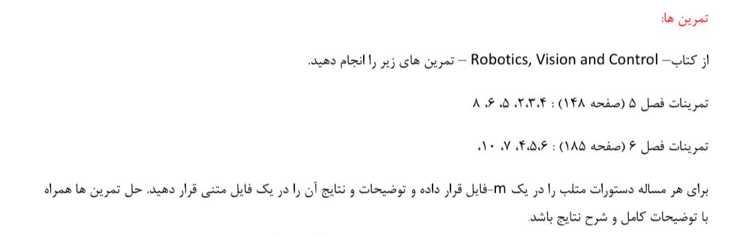 میخام این تمرینها رو حل کنی، میتونی انجامشون بدی؟ همهچی توی عکس نوشته شده کارشناس ارشد هوش مصنوعی این جزئیات حل هست و باید با متلب انجام بشه. دو هفته هم وقت دارم