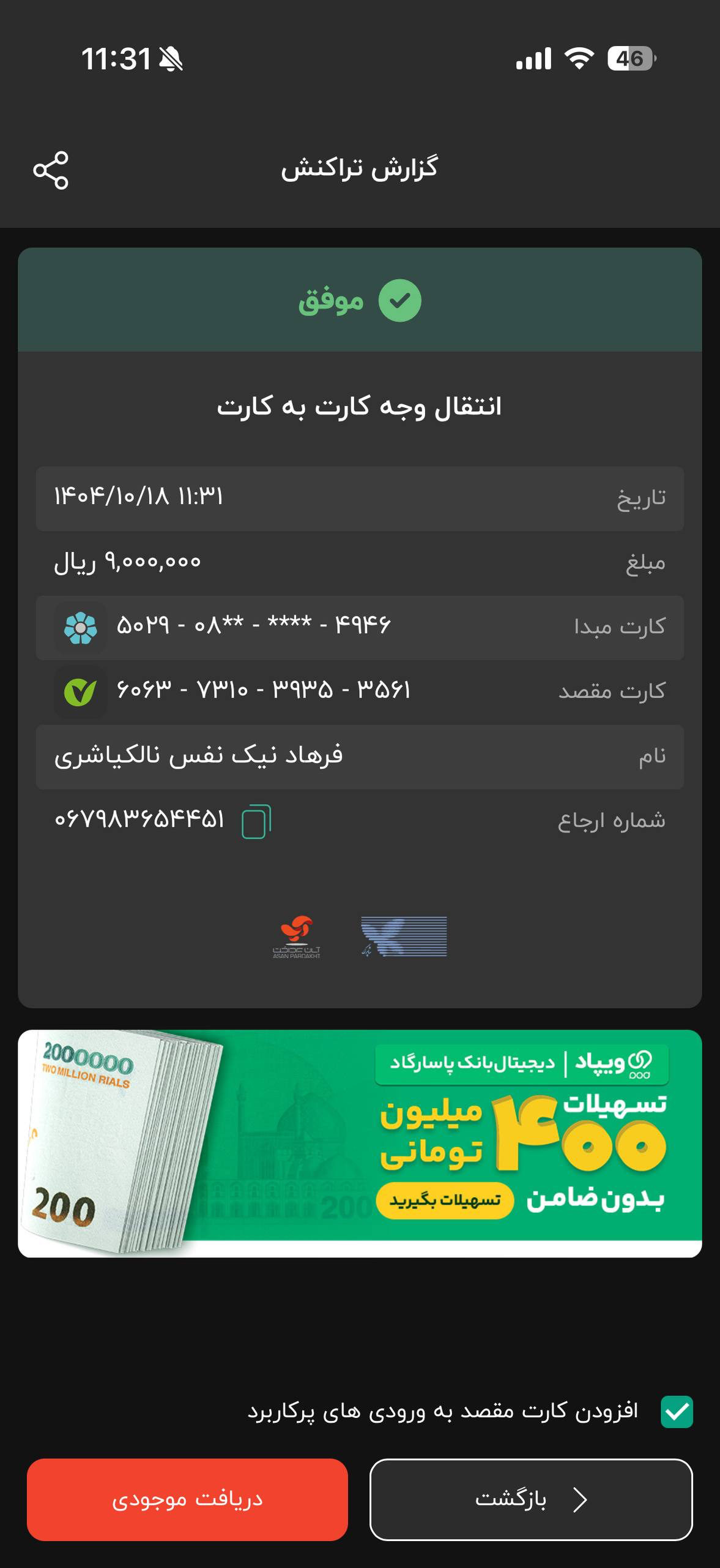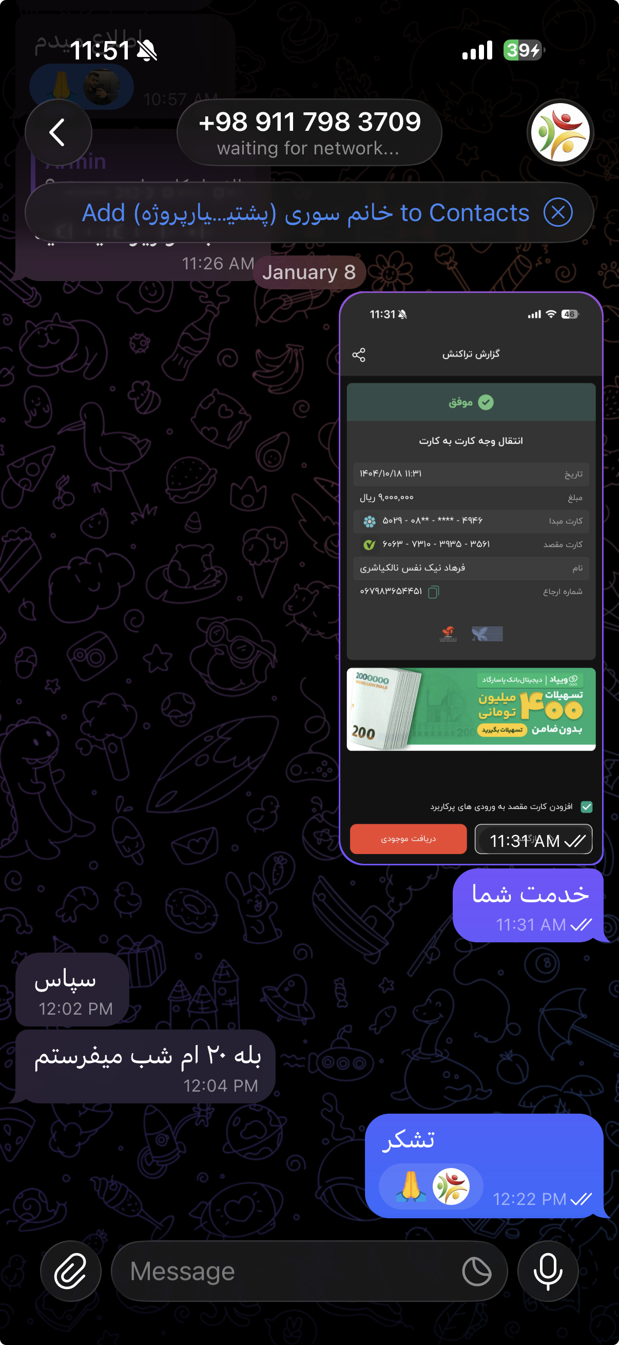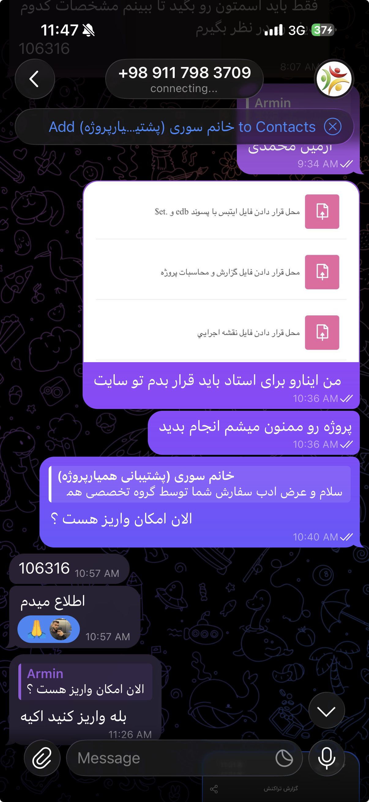 سلام وقت بخیر آرمین محمدی هستم و دو سه روز پیش در تلگرام با اکانت خانم سوری پروژه فولاد دانشگاهم رو ثبت کردم و نصف مبلغ پروژه رو واریز کردم (۹۰۰ هزارتومان). با توجه به وضعیت اینترنت امکان دسترسی به تلگرام و دریافت پروژه رو ندارم و فکر کنم اون دوستی که پروژه رو انجام داده هم به همین شکله. پیام رسان آیگپ برای من کد ارسال نمیکنه و مجبور شدم اینجا پیام بزارم. میخواستم بدونم اگر پروژه آماده هستش اون شخصی که انجام داده اگر بتونه فایل های پروژه رو داخل سایت دانشگاهی مون قرار بده ممنون میشم. لطفا با ایشون صحبت کنید و اگر موافقت کردن با بنده تماس بگیرن که بنده تمام مشخصات لازم رو براشون ارسال کنم تا بتونن وارد اکانت بنده در سایت دانشگاه مون بشن و پروژه رو قرار بدن. بابت باقی هزینه پروژه هم باهاشون صحبت میکنم و هر موقع نیاز باشه مابقی هزینه رو به شماره کارتی که مورد تایید سایت باشه واریز میکنم. تشکر پروژه فولاد دانشگاهی - آرمین محمدی - کد پروژه 106316
