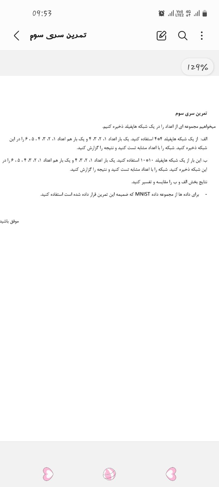 سلام وقت بخیرنشد فایل بفرستم این صورت سوال تمرین هست تا جمعه