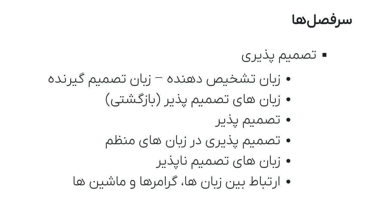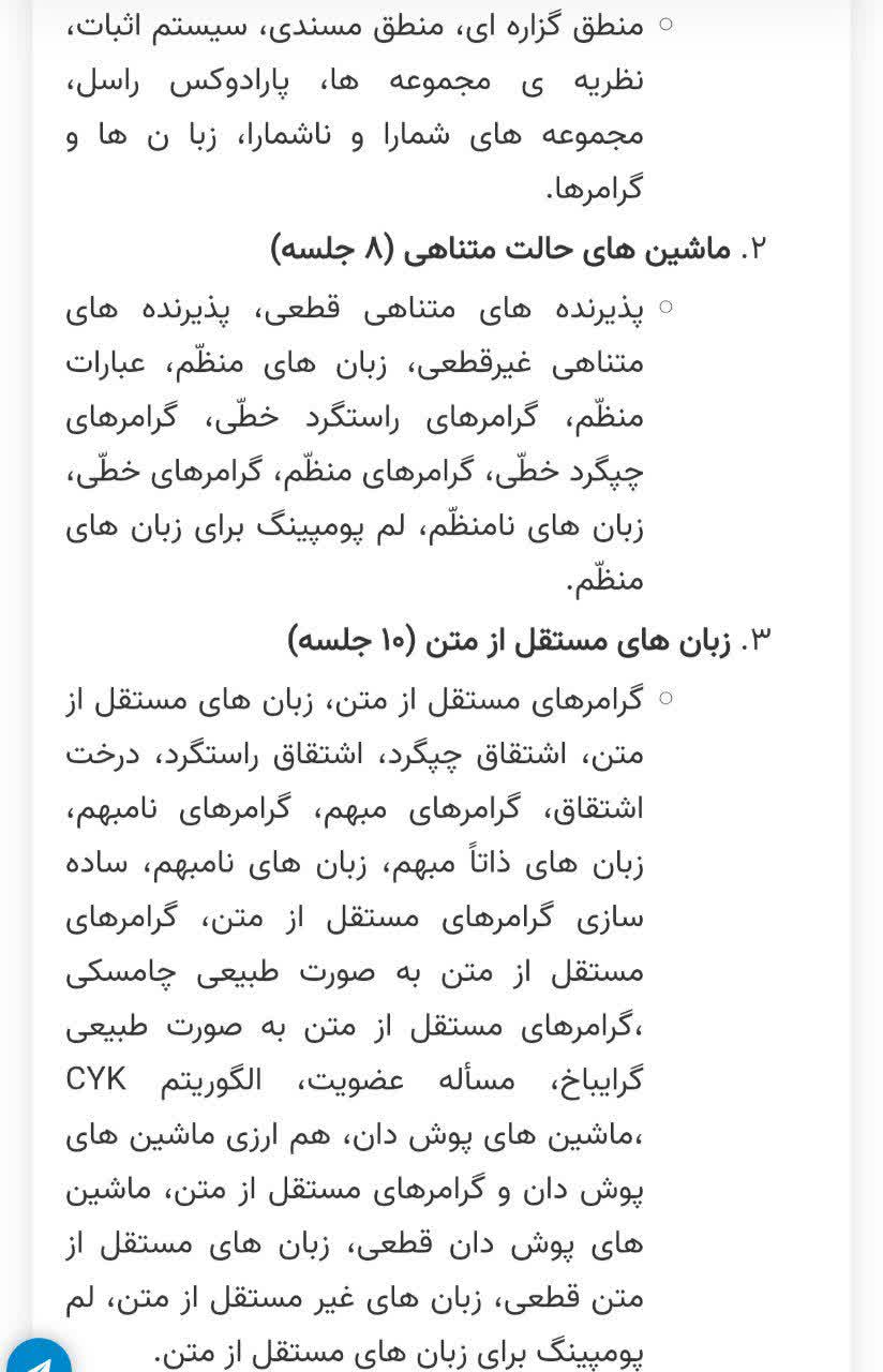 : اینا مباحث هستن امتحان دانشگاه دیگه چهارشنبس ساعت 13.45 نزدیک ده تا سوال جزوه ندارم درس نظریه زبان ها و ماشین ها رشته مهندسی کامپیوتر هست دانشگاه ازاد