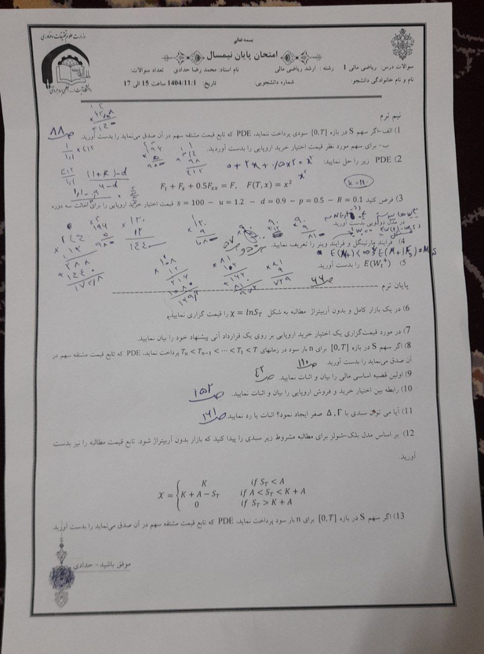 107956 - حل سوالات ریاضی /